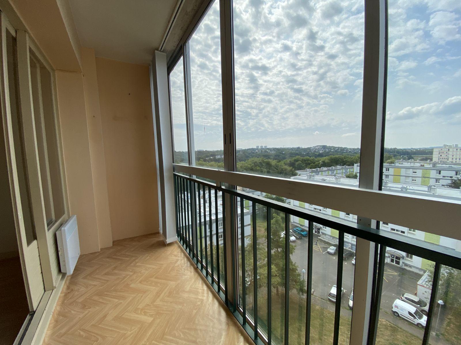 Cet appartement se compose d'un séjour lumineux ouvrant sur de larges baies vitrées, offrant une vue sur la ville, d'une cuisine indépendante aménagée, d'une chambre avec placard, d'une salle de bains et de WC séparés.