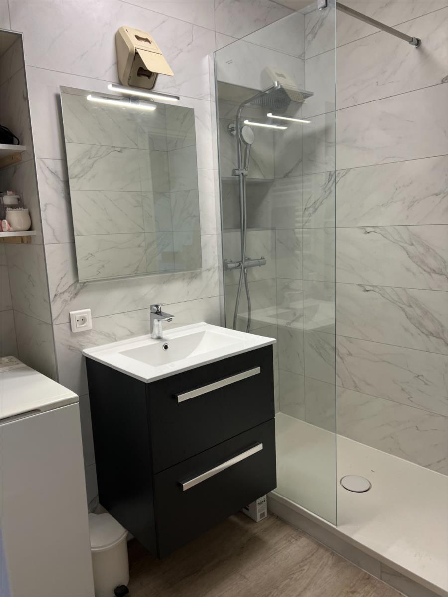 Un appartement de type t2 , situé au troisième étage formant duplex avec le quatrième étage d'une surface de 47 m2 comprenant : hall , placards, salle d'eau , wc  , séjour + coin cuisine, chambre Parking extérieur