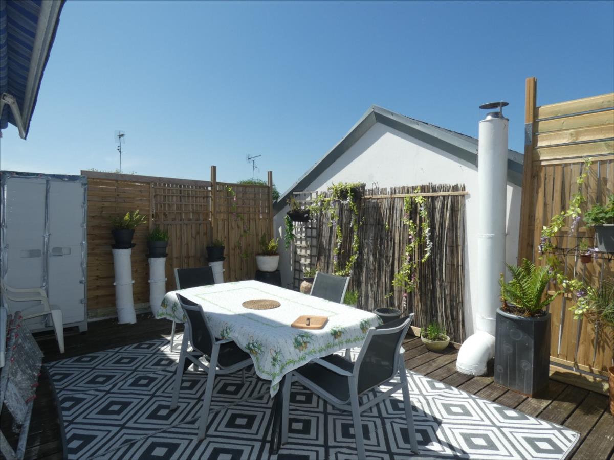 Situé en plein centre, ce duplex de 92 m² situé au 1er et dernier étage dispose d'une entrée privative. Il est composé d'un hall d'entrée, salon-séjour lumineux, cuisine aménagée et équipée avec accès à une grande terrasse en bois et sans vis-à-vis, chambre, salle d'eau-wc. Au-dessus, le palier dessert 4 belles chambres et une salle d'eau-wc. Ce duplex est habitable immédiatement et fonctionnel. Parkings à proximité. Référence 2174.