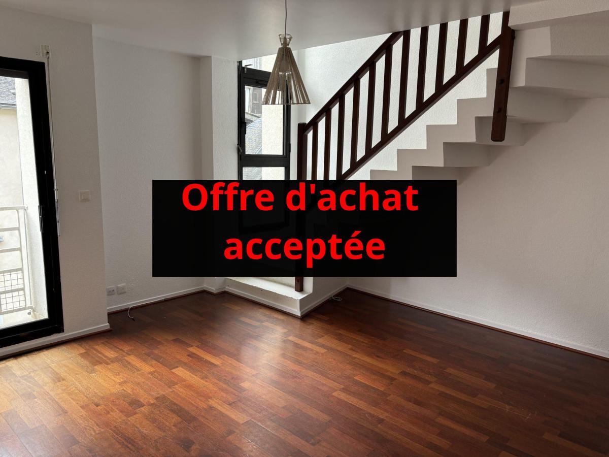 Dans le centre historique de Rennes, rue Leperdit, un appartement de type T3 duplex comprenant au premier niveau une entrée avec placards, séjour avec coin cuisine indépendant.