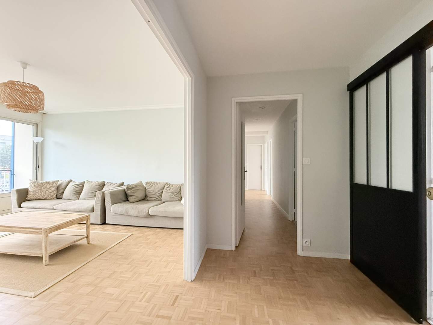 Au deuxième étage d'un immeuble au pied des commerces, du lycée et du parc de Bréquigny, Appartement 4 chambres rénové de 102m² avec balcon OUEST de 3m², cave de 15.7m² et un stationnement privatif.