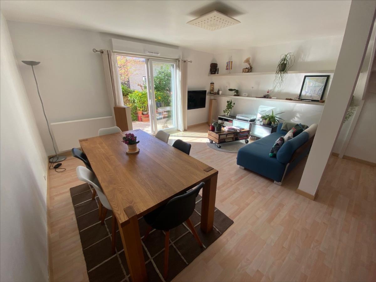 Bénéficiant d'une entrée particulière, il vous offre, au rez-de-chaussée, un hall avec placard, un grand séjour donnant sur une terrasse, une cuisine aménagée et équipée, des WC. De plus il bénéficie d'un petit jardin coté ouest.A l'étage, vous trouverez trois chambres dont deux avec placard et une autre avec balcon, une salle d'eau, des WC. Une cave et un parking boxé agrémentent l'appartement.