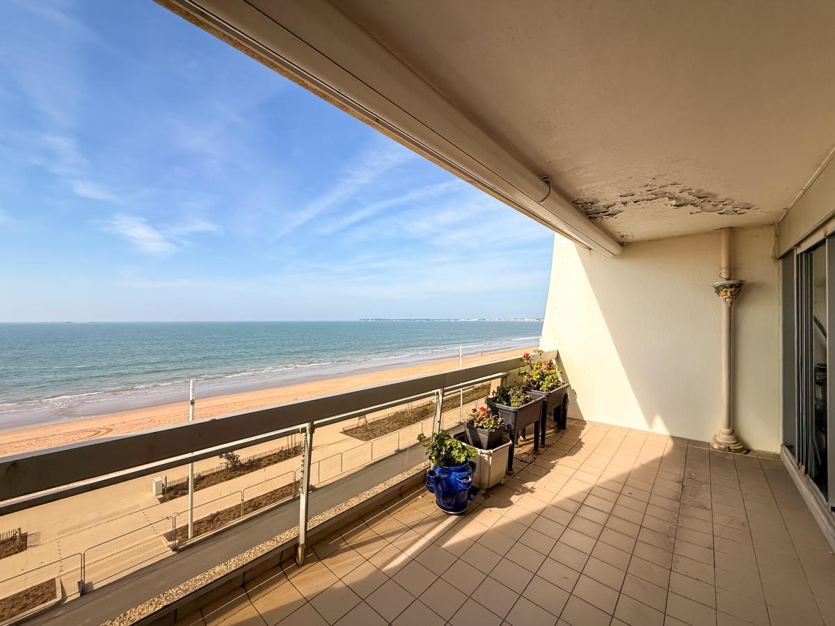 LA BAULE - Boulevard de l’Océan, au 3eme etage avec ascenseur, appartement T2/T3 de 78m2 comprenant: Entrée, pièce de vie de 34 m2 donnant sur la terrasse de 13 m2 exposée Sud-Ouest face à l’océan, cuisine indépendante de 10 m2, chambre de 15,15 m2, salle d’eau, WC.