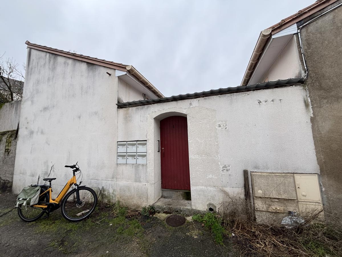 Studio en rez-de-chaussée comprenant une entrée sur séjour avec coin cuisine, une salle d’eau avec WC, ainsi qu’un escalier menant à l’étage.
