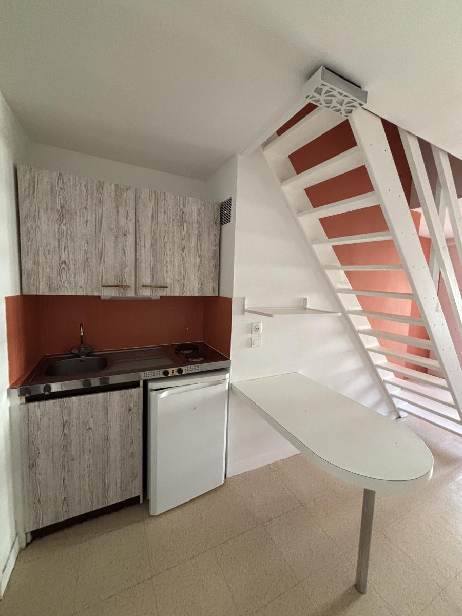 Il se compose d'une entrée donnant directement sur la pièce de vie fonctionnelle avec son coin cuisine doté de 2 plaques de cuisson, un frigo, un évier, placards hauts et bas, et table de cuisine.