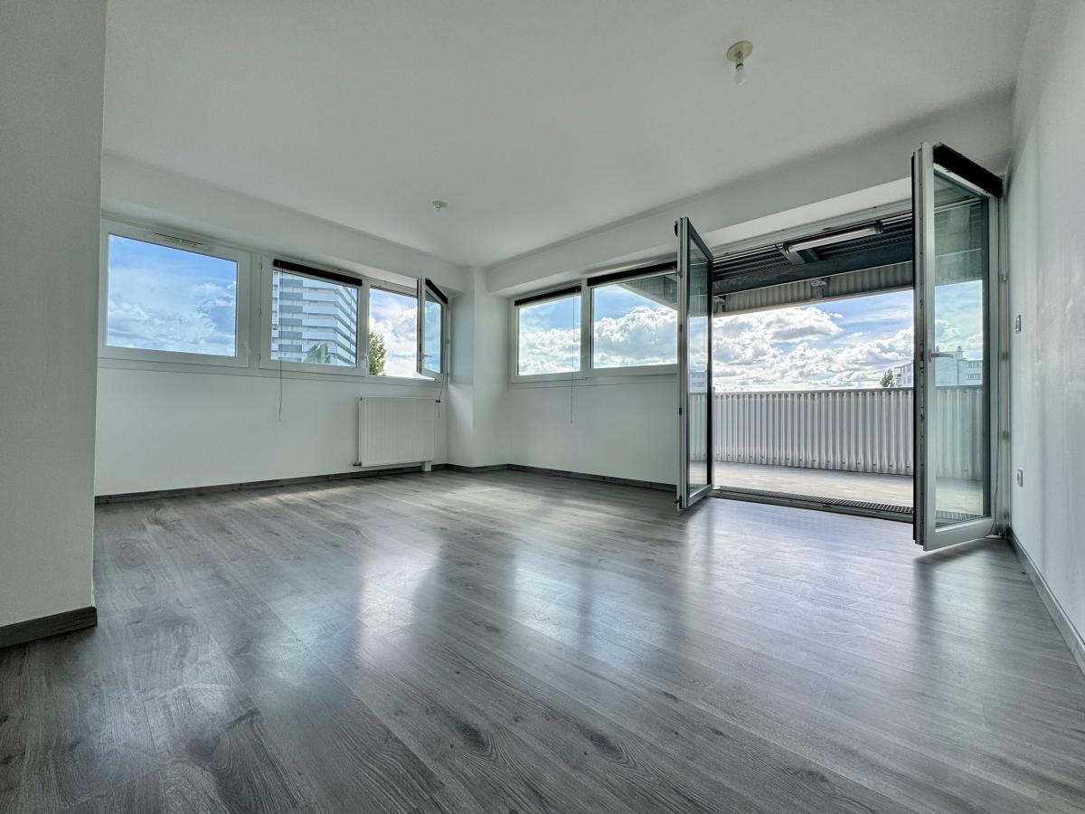- Un séjour lumineux avec cuisine équipée (réfrigérateur, plaques, hotte) de 27,48 m²