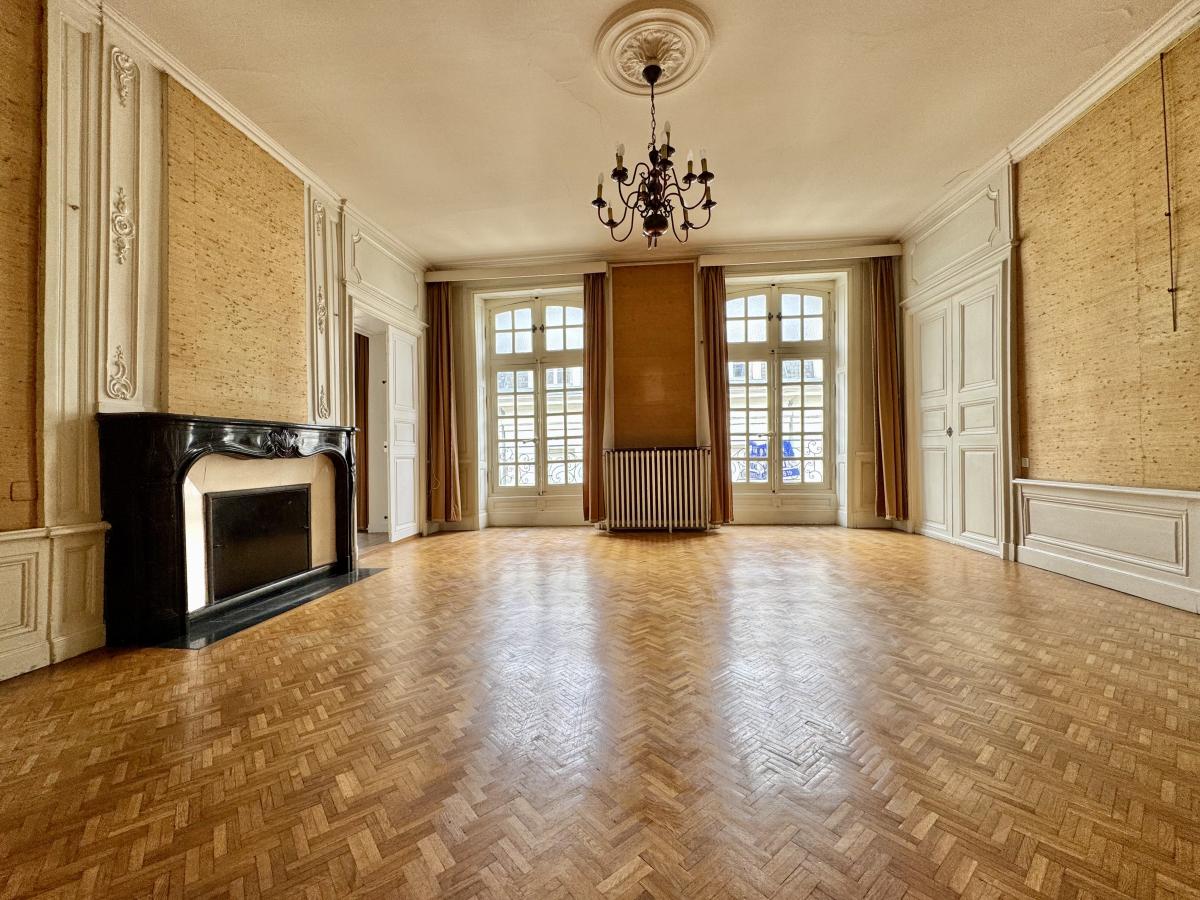 Au troisième étage d’un immeuble ancien datant de 1700, bien entretenu (4 étages, sans ascenseur), cet appartement de type 4, avec une exposition nord-ouest, développe une surface loi Carrez de 119,61 m² (125,12 m² au sol), avec une hauteur sous plafond de 3,11 mètres, préservant moulures, volumes et cachet de l’époque.