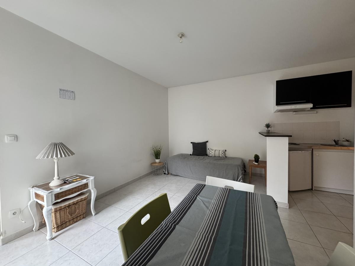 d'une entrée, d'un salon avec cuisine ouverte, d'une salle d'eau avec WC et d'une chambre. En annexe, une place de stationnement sécurisée.