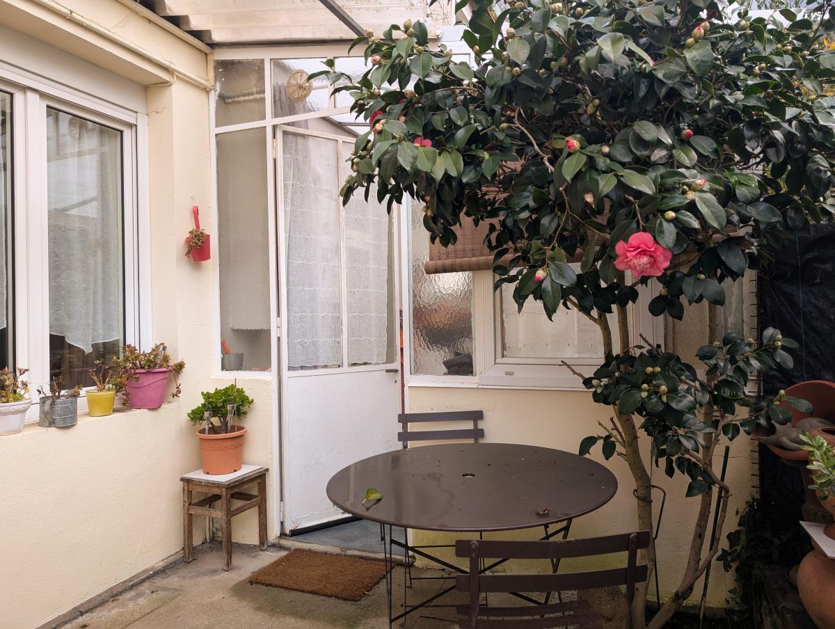 Il se compose d’une cuisine dans véranda (9,64m²), d’un séjour avec placard (13,88m²), d’une chambre (12,72m²) ainsi que d’une salle d’eau avec WC (2,99m²). L’ensemble est complété par la jouissance privative d’une agréable courette donnant sur une cour intérieure, offrant un environnement calme. En annexe, une cave en sous-sol de 11,55m².