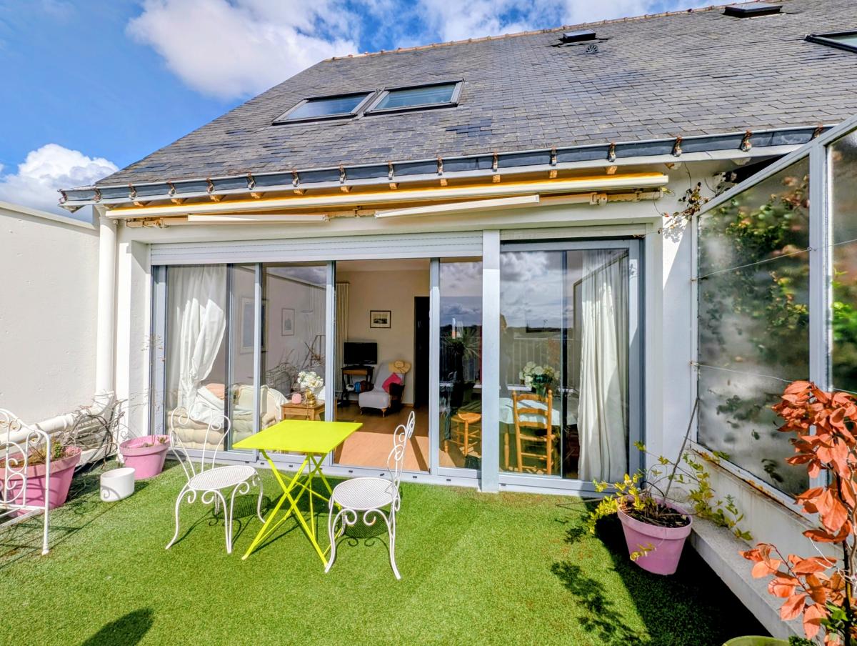 - au rez-de-chaussée : une entrée (7,74m²), un séjour (16,4m²) donnant sur une terrasse de 12,59m² exposée Sud avec store-banne, une cuisine (9,82m²), un WC, un débarras;