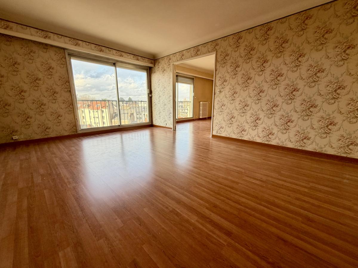 Dans un ensemble en copropriété, au 8ème étage avec ascenseur un appartement à rénover de 88m² comprenant une entrée avec placard, salon et séjour (ou chambre), cuisine aménagée et équipée, cellier, dégagement, 2 chambres, salle de bains, wc