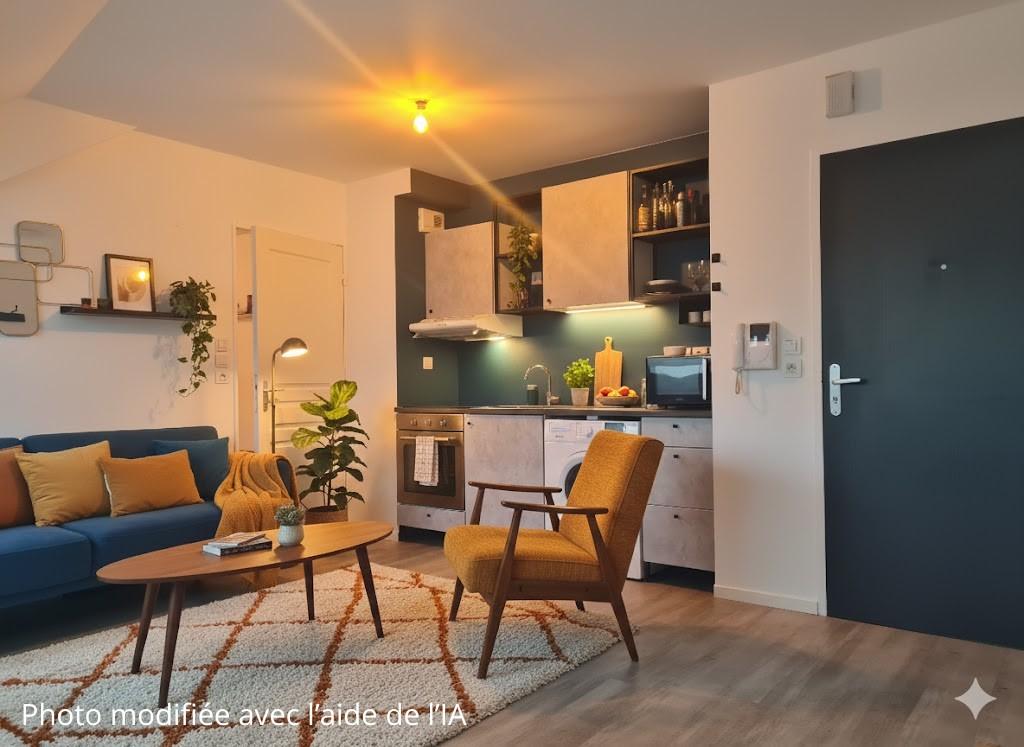 Situé au 4ᵉ et dernier étage avec ascenseur d’une résidence de 2012, cet appartement de 47 m² au sol (35 m² Carrez) offre une pièce de vie lumineuse de 25 m², orientée à l’ouest, comprenant une cuisine aménagée et entièrement équipée (four, hotte, plaque, réfrigérateur et lave-linge).