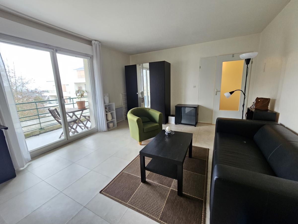 ORVAULT PETIT CHANTILLY, dans une résidence très bien entretenue et sécurisée, au calme, à proximité immédiate des commerces et du tramway ligne 3 arrêt Bignon, appartement de type 2 d'environ 46m² au 3ème étage avec ascenseur comprenant une entrée avec placards, une cuisine aménagée, un salon- séjour avec accès à un grand balcon, une chambre avec placard, des wc séparés et une salle de bains.