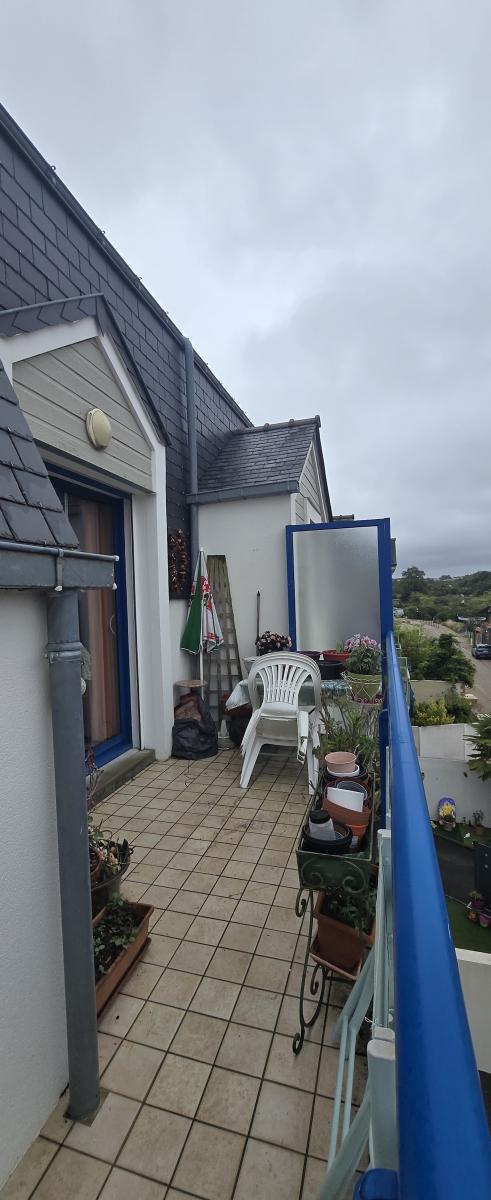 PORNIC CENTRE, proche vieux port et commerces, appartement en duplex d'une surface de 118,8 m² au sol et d'une surface Carrez de 102,62 m². L'appartement comprend une entrée, salle à manger, salon, cuisine, une chambre, salle d'eau et WC, et à l'étage mansardé, un palier deux chambres et une salle de bains complète. Le séjour exposé sud, d'une surface de 28,22 m², offre un espace de vie agréable avec un balcon de plus de 8 m².
