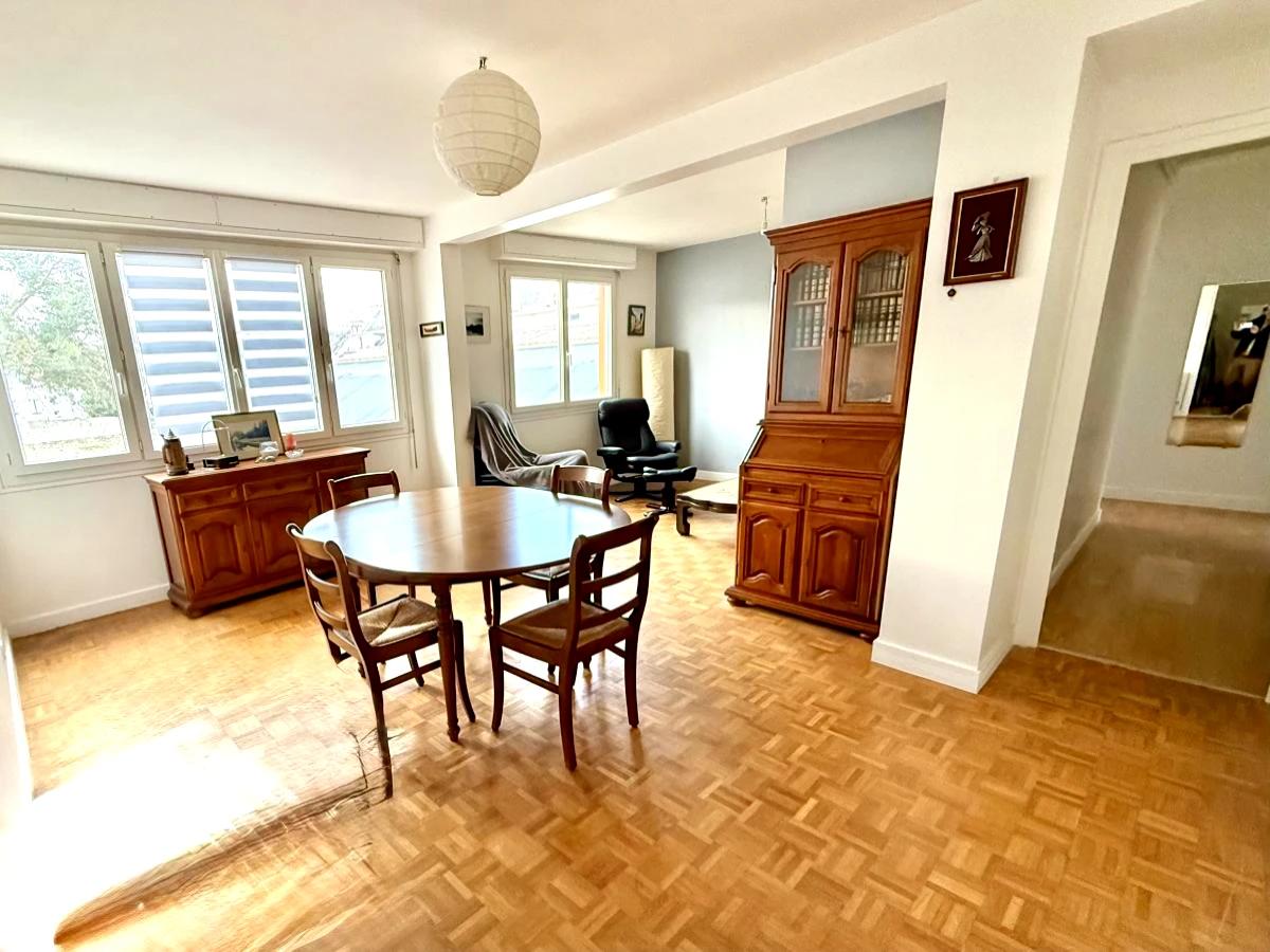 Le salon séjour est spacieux et lumineux sans vis à vis. La cuisine est indépendante et la distribution intérieure de l'appartement peut vous permettre de réunir ces deux espaces pour créer une grande pièce de vie avec une lumière traversante.