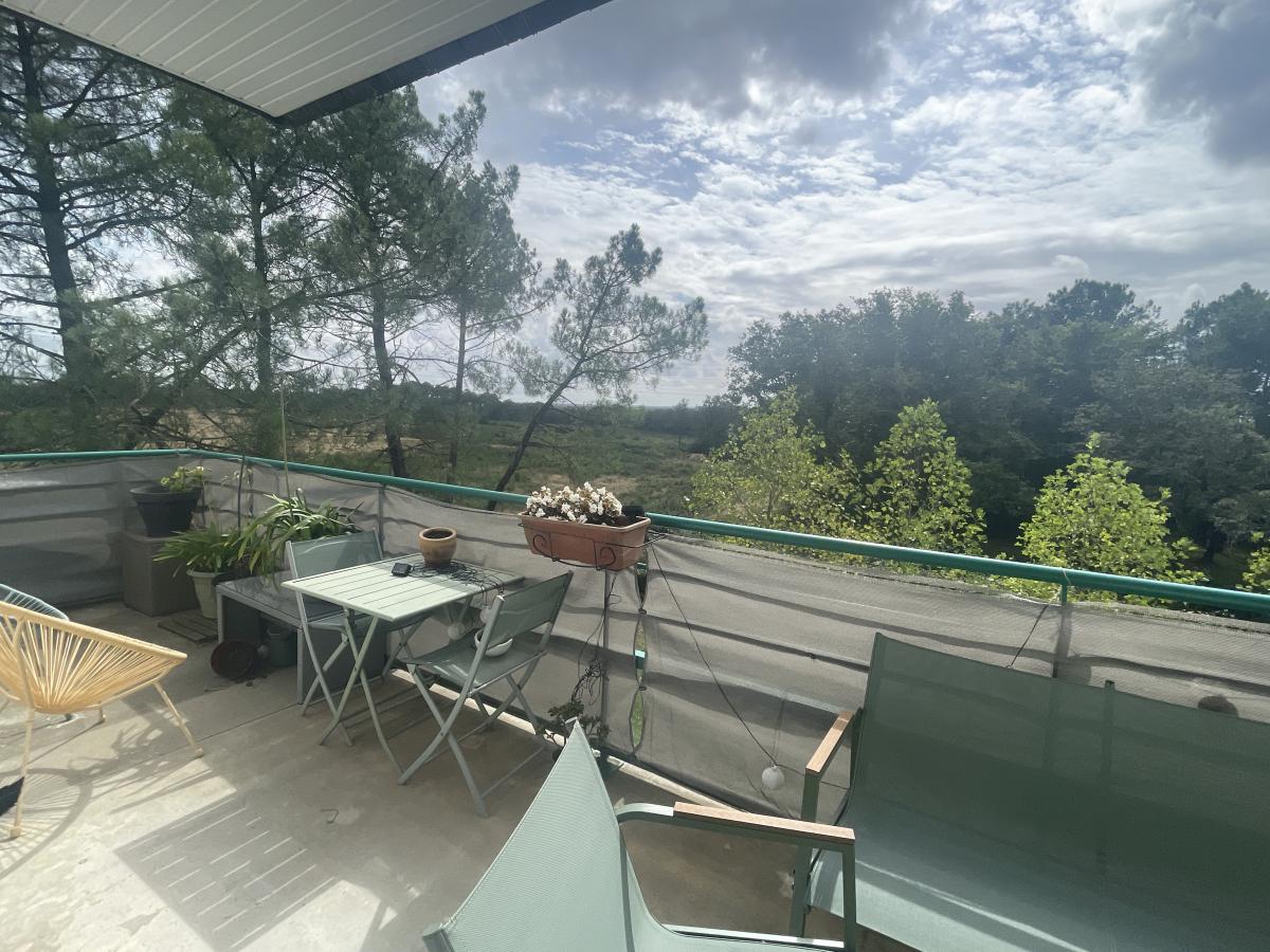Le séjour s’ouvre sur un très grand balcon de 18 m², idéal pour profiter du calme et de la vue dégagée sur les espaces naturels.