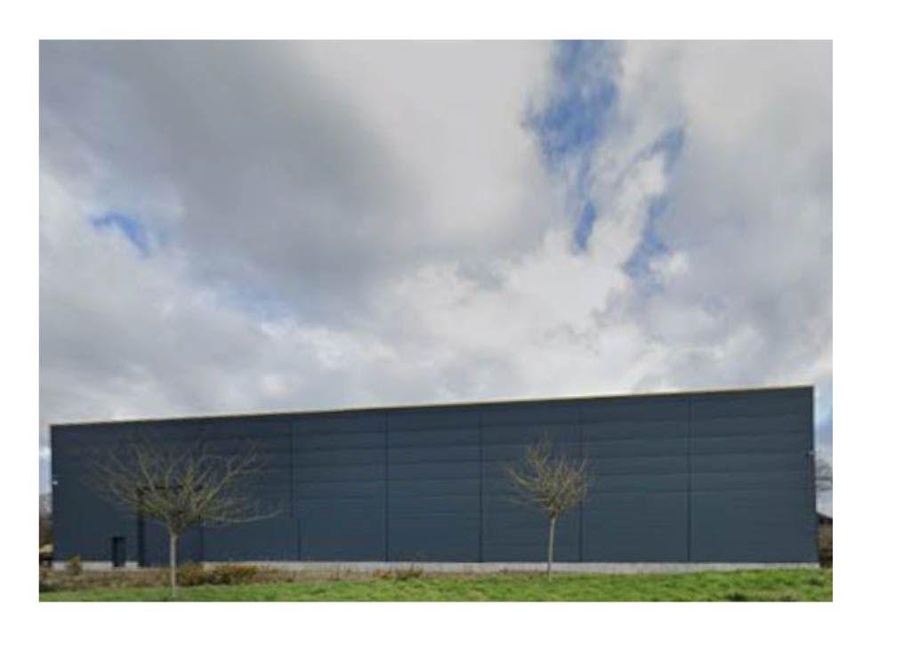Grand entrepôt de 1000m² sur terrain de 5887m², situé dans une zone artisanale.
