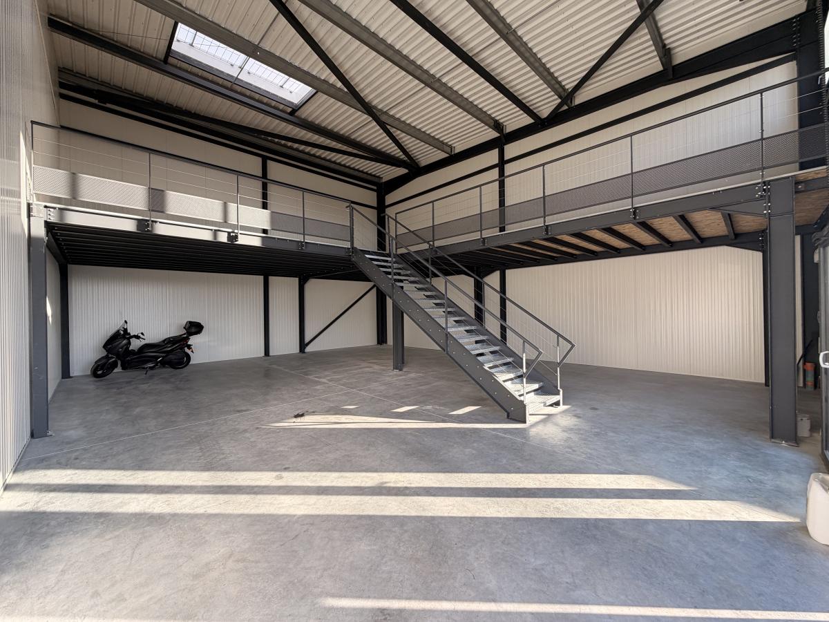 Ce bien développe 129 m² au sol complétés par 80 m² de mezzanine, offrant une surface totale d’environ 209 m², idéale pour une activité artisanale.