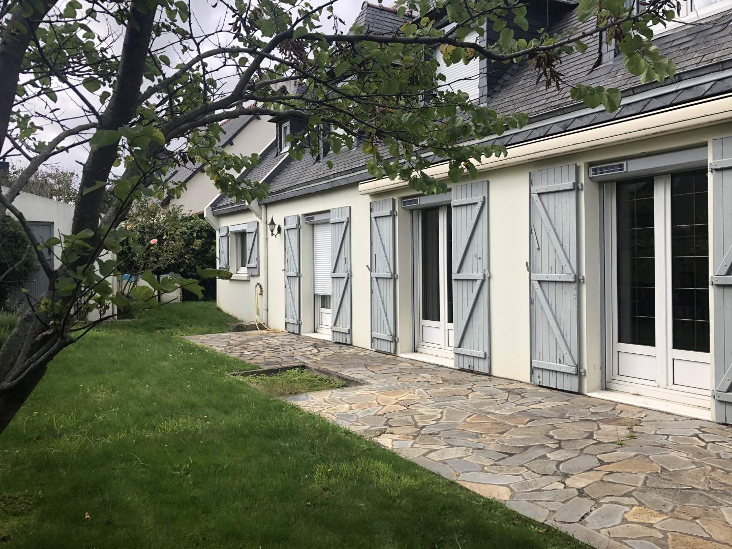 Belle maison de cinq chambres, construite sous ardoises véritables et située dans quartier calme de Langueux, tout proche centre, comprenant :