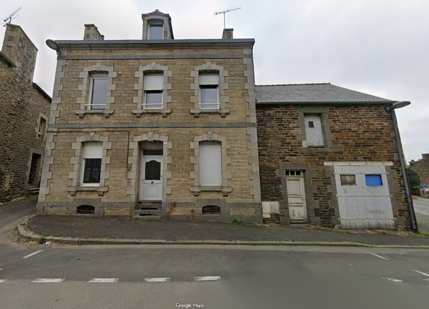 Un ensemble immobilier à rénover, en pierre sous ardoises composé initialement de deux maisons anciennes aujourd'hui séparées par une cloison.