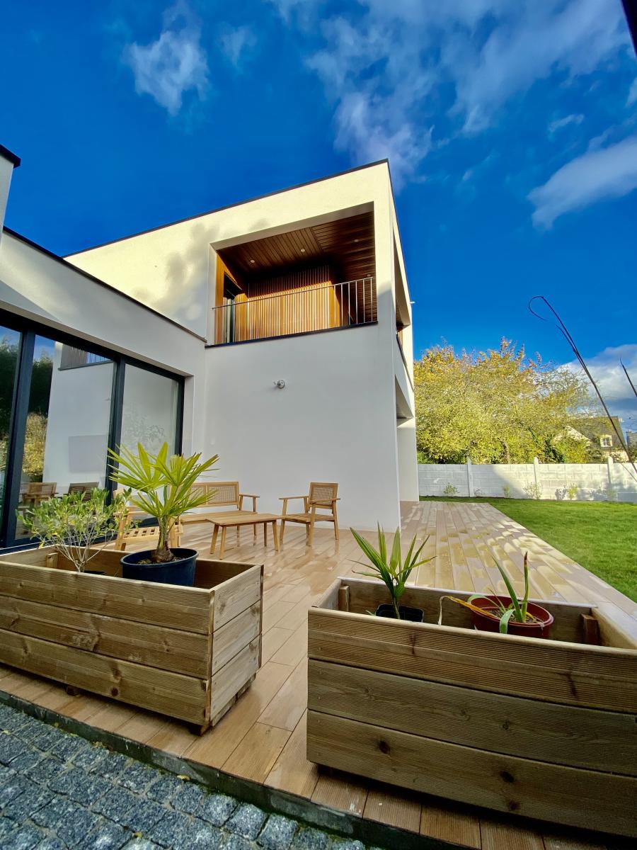 Située au fond d'une petite impasse à l'abri des regards, dans le centre de Plérin, très belle maison lumineuse achevée en 2024 construite avec goûts et de beaux matériaux.