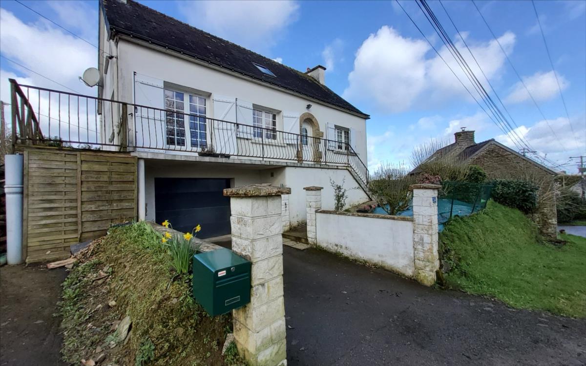 Carhaix, une maison d'habitation en parpaings sous toiture ardoises et construction 1975 comprenant :- Au rez-de-chaussée surélevé : Entrée, cuisine aménagée et équipée, salle à manger et salon avec poêle à bois, chambre, salle d'eau, wc.