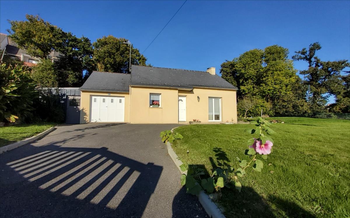 CARHAIX, une maison d'habitation en briques sous toiture ardoises et construction 2009. Maison plain-pied proche des commerces.Pièce de vie ave coin cuisine aménagée et séjour, dégagement, 2chambres, salle d'eau et WC.Garage au pignon avec grenier au-dessus.Terrasse, cour goudronné et terrain clos attenant.