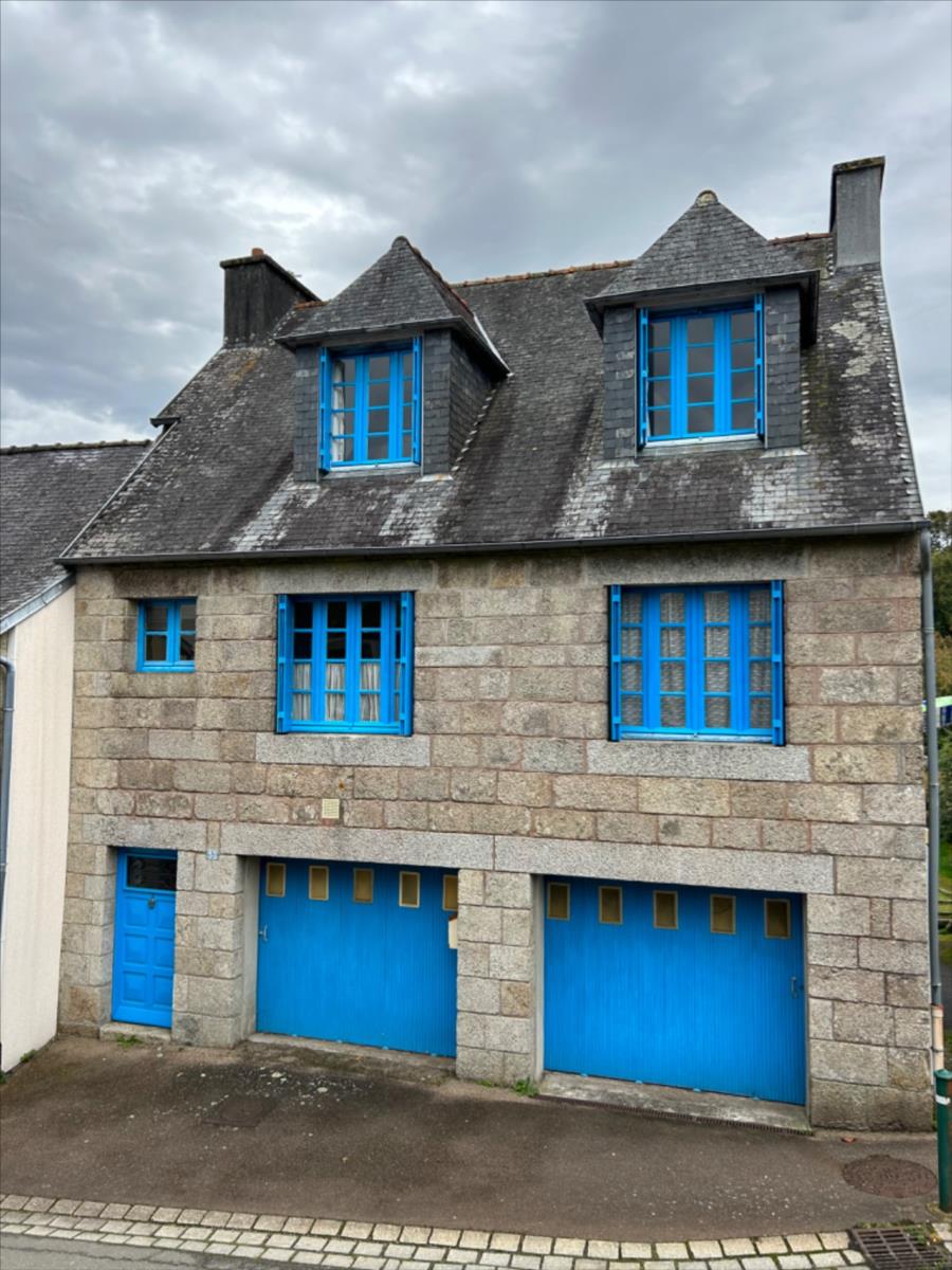 Dans le centre d'Huelgoat, cette charmante maison en pierres se compose au rez de jardin d'un sous-sol compartimenté en garage chaufferie et accès jardin.
