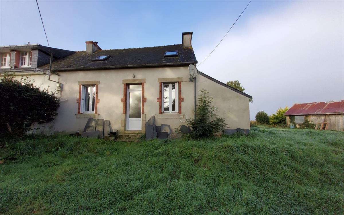 En campagne, à 10 minutes de Carhaix, maison mitoyenne, comprenant:Séjour/cuisine, 1 chambre, salle de bains, W.C.A l'étage, palier desservant deux chambresAppentis au pignonJardin attenant, et jardin de l'autre côté de la route