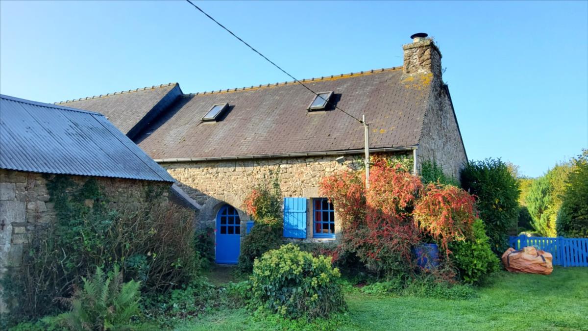 En campagne, dans hameau agréable proche de l'axe Lorient Rsocoff, à 5 minutes du Heulgoat et 10 minutes de Carhaix,Jolie maison en pierres sous ardoises, mitoyenne d'un côté ayant: