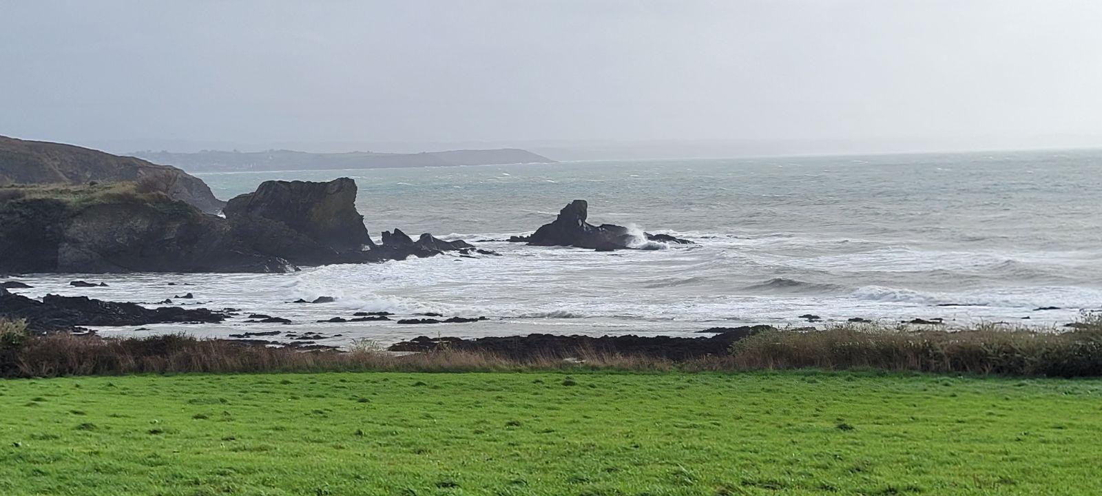 TELGRUC SUR MER -En campagne proche de la mer - Corps de ferme bien tenu offrant une agréable vue sur mer et composé d'une maison d'habitation ayant cuisine-salle à manger, 1 salon-séjour, 5 chambres, salle d'eau et wc, une maison annexe à rénover, hangar et jardin sur 1461m².