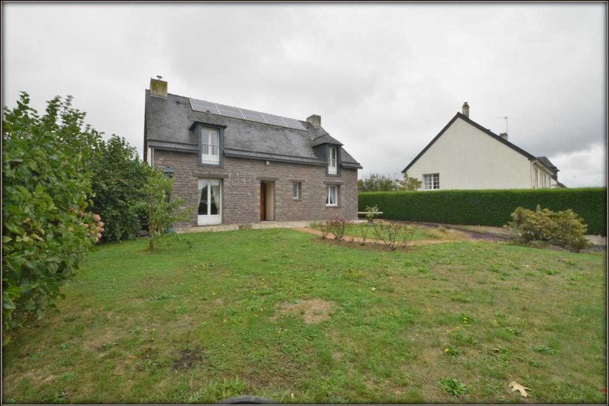 Jardin sur l’avant et cour goudronnée sur l’arrière avec cabanon. La maison dispose de panneaux solaire.