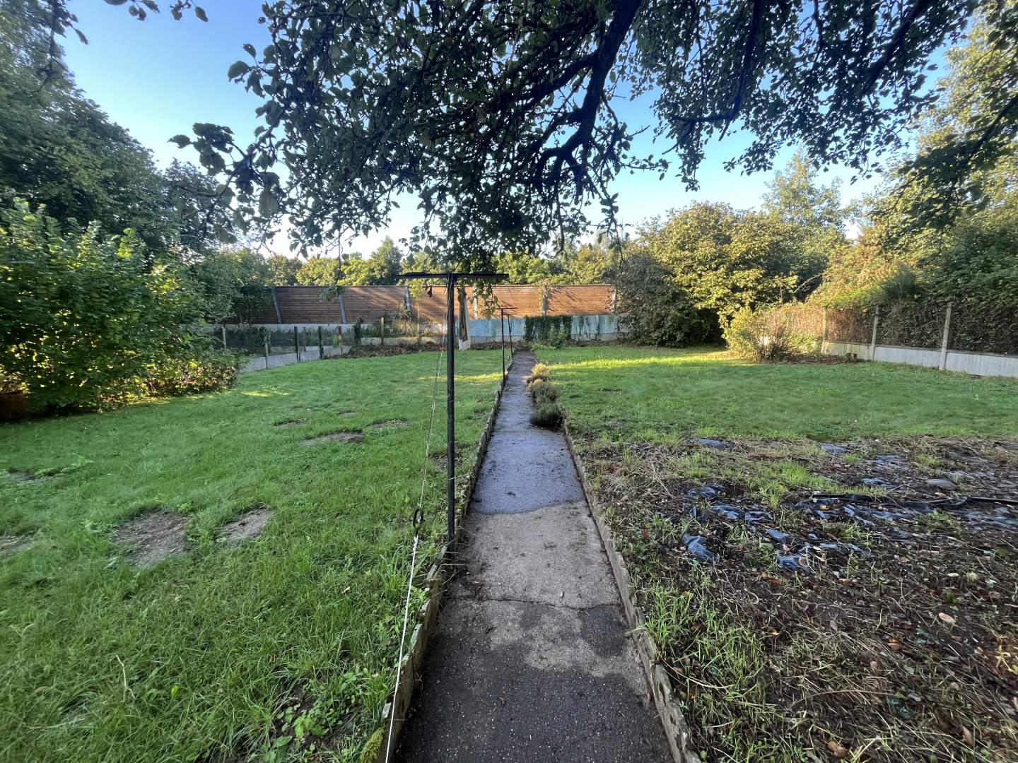 Extérieur : Terrasse et jardin derrière la maison, orientation Sud-Ouest.