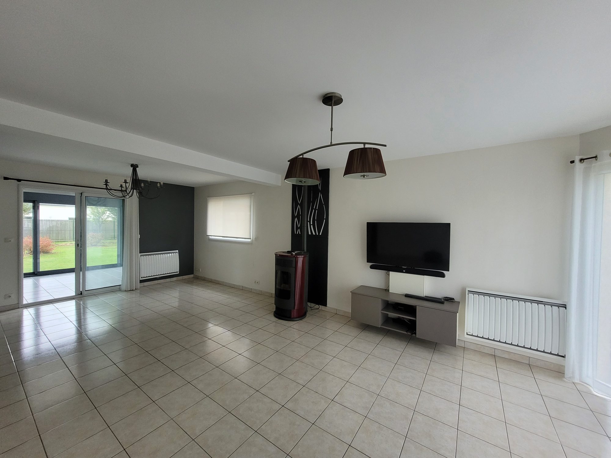 Au rez-de-chaussée ; un salon et salle à manger avec poêle à granule, wc, une cuisine aménagée et équipée, une grande véranda, une buanderie, une chambre avec salle d'eau.