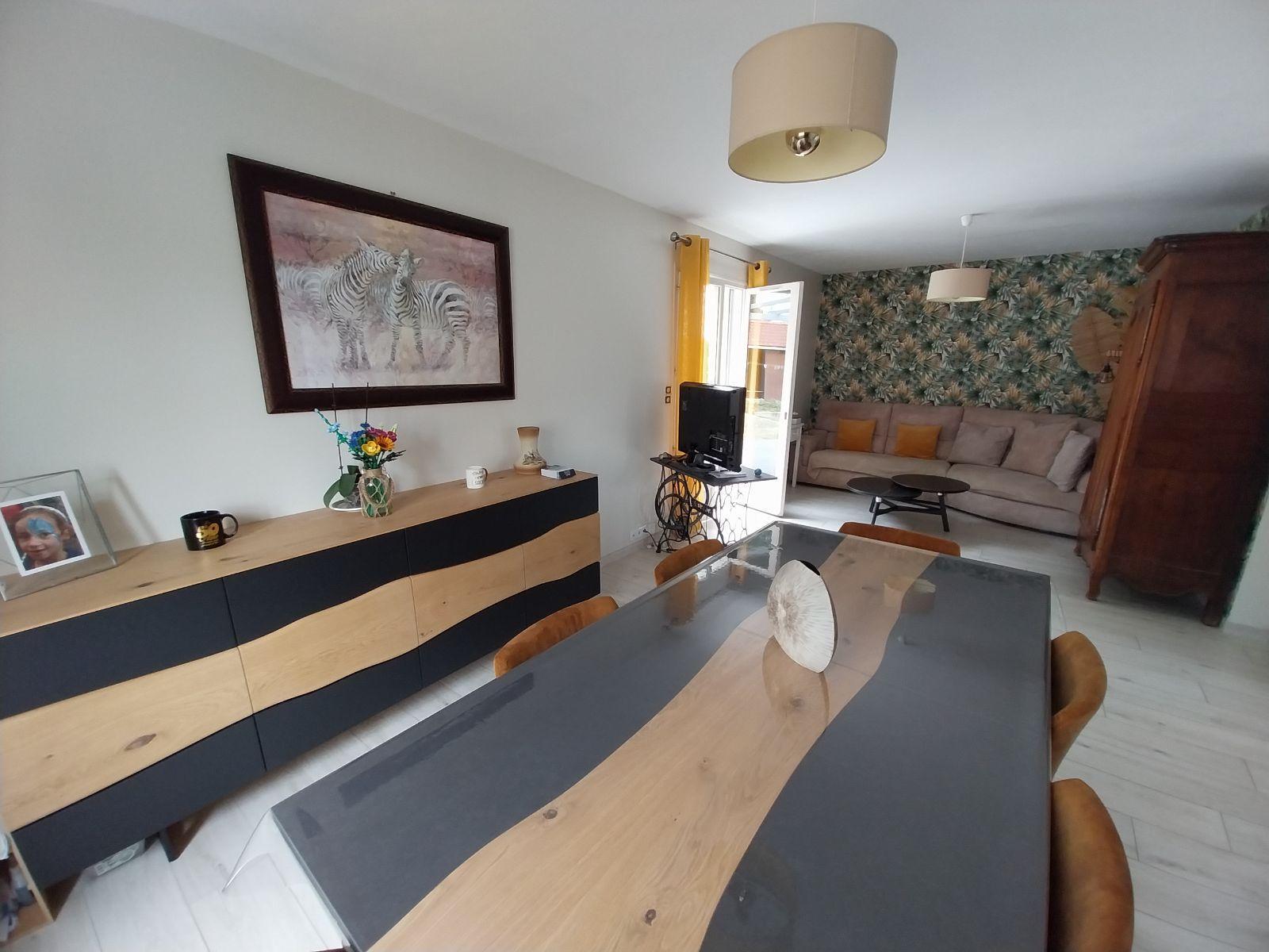 POCE LES BOIS. En lotissement, maison Type 5 de 102 m2 Hab. et terrain de 632 m2. Belle pièce de vie sur carrelage, cuisine A/E, 4 chambres, salle d'eau et salle de bains. Sous-sol complet. Chauffage pompe à chaleur AIR/AIR et climatisation.