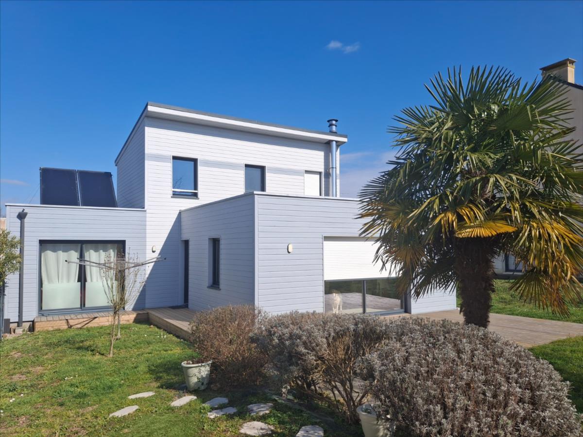 Couëron secteur résidentiel. Venez découvrir cette maison bois basse consommation de 2010 signée Dominique Charles. Vous serez séduit par cette spacieuse pièce de vie de 50 m2 baignée de soleil donnant sur terrasse bois plein sud, cuisine ouverte aménagée et équipée. Autre point fort, sa vie de plain-pied grâce à ses deux chambres en RC dont une suite parentale de 20 m2 avec dressing et salle d'eau. A l'étage salle de bains et deux chambres supplémentaires. Garage. Jardin de 654 m2.
