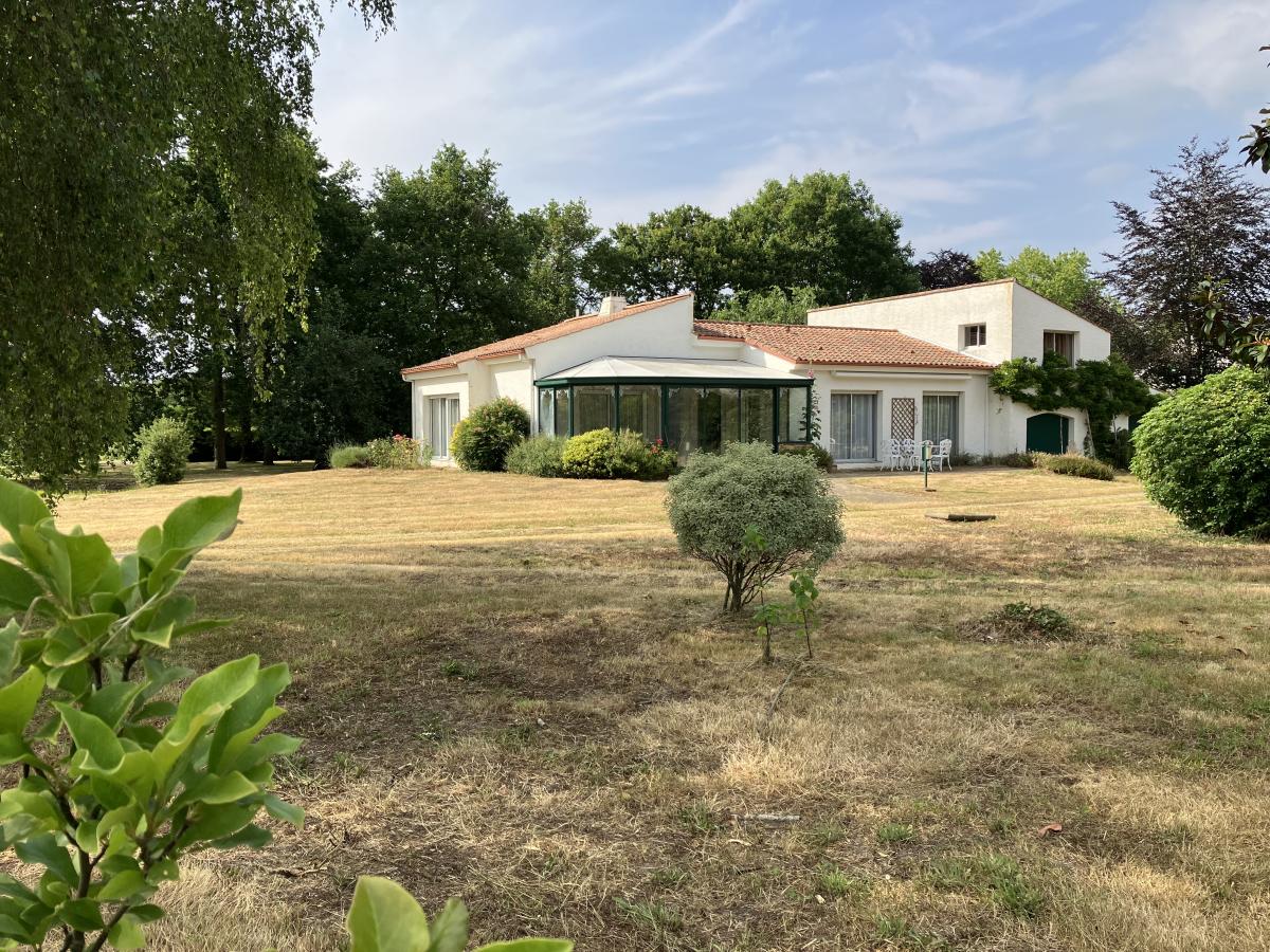 A seulement quelques minutes de Machecoul, cette agréable maison familiale construite vers 1975, implantée sur un magnifique terrain arboré, sans vis à vis. La maison offre une surface habitable d'environ 140 m² et se compose au rez-de-chaussée d'une véranda d'environ 22 m² idéale pour profiter des mi-saisons, d'un hall d'entrée, d'un vaste salon/séjour d'environ 40 m² avec une cheminée, d'une cuisine indépendante aménagée et équipée donnant accès sur la terrasse, un dégagement, une salle d'eau, des toilettes, trois chambres dont une donnant sur terrasse. A l'étage, le dégagement dessert deux chambres supplémentaires dont une avec un espace salle d'eau. Pour compléter ce bien, un garage double pour stationner aisément deux véhicules, une cave, des toilettes, un bûcher. Un chalet bois parfait pour ranger les outils de jardin ou les jeux de plein air des enfants. Un bassin et un puits mitoyen complètent ce bien. Un cadre idéal pour les amoureux de nature et de tranquillité.