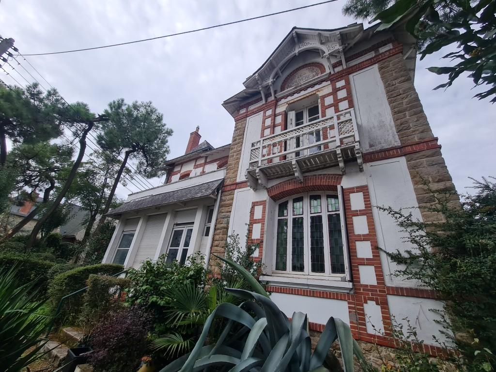 Au coeur des commerces et à 280 m de la plage, villa de charme de 1890 classée "Remarquable" d'une supérificie habitable de 229 m², divisée actuellement en 2 appartements séparés. Appartement du RDC haut : Séjour salon avec cheminée et véranda, cuisine séparée, dégagement avec placards, deux chambres, 1 salle de bains, WC. RDJ : Cave + cave à vin, deux chambres, Un garage indépendant.
