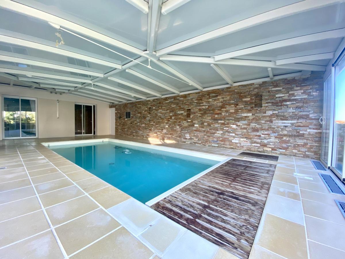 Dans le centre de Monnières, au calme à 15 minutes de la métropole nantaise et 5 minutes de la gare du Pallet. Belle propriété de plain pied rénovée en 2008 et 2013 d'une surface de 235 m² sur une parcelle de plus de 1300 m² comprenant un hall d'entrée, un salon / séjour avec plafond cathédrale, une cuisine aménagée et équipée avec poêle à bois, une chambre parentale avec dressing donnant accès sur une salle d'eau équipée d'un sauna neuf, une salle de bains avec douche et baignoire, deux chambres, 3 WC, une lingerie et une chambre supplémentaire à l'étage. Une piscine d’intérieur chauffée d'une dimension de 8 m par 3 m avec massage et nage à contre courant et une véranda chauffée complètent cette maison de prestations qualitatives. A l’extérieur, vous trouverez un jardin aménagé et paysagé avec terrasse et pergola bioclimatique et un garage de plus de 70 m2 avec atelier. A visiter sans tarder !