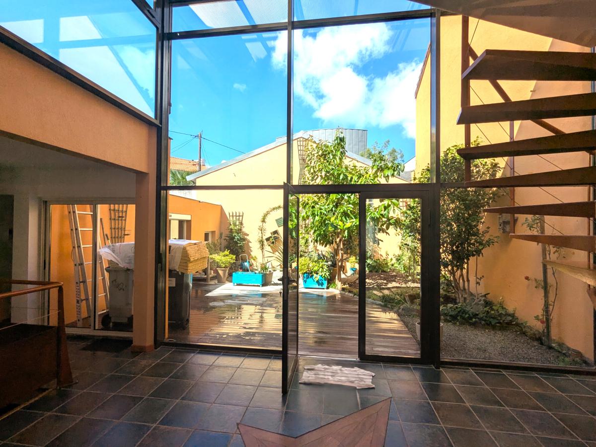 Dès l’entrée, vous serez séduits par sa pièce de vie traversante de plus de 50 m², baignée de lumière grâce à ses murs et plafonds en verrière qui ouvrent sur un patio végétalisé, intime et sans vis-à-vis. Un lieu unique, idéal pour profiter d’instants de détente en toute tranquillité. La cuisine ouverte, aménagée et équipée, s’intègre harmonieusement à l’espace. Une buanderie, un bureau, une salle de bains et des WC complètent le rez-de-chaussée.