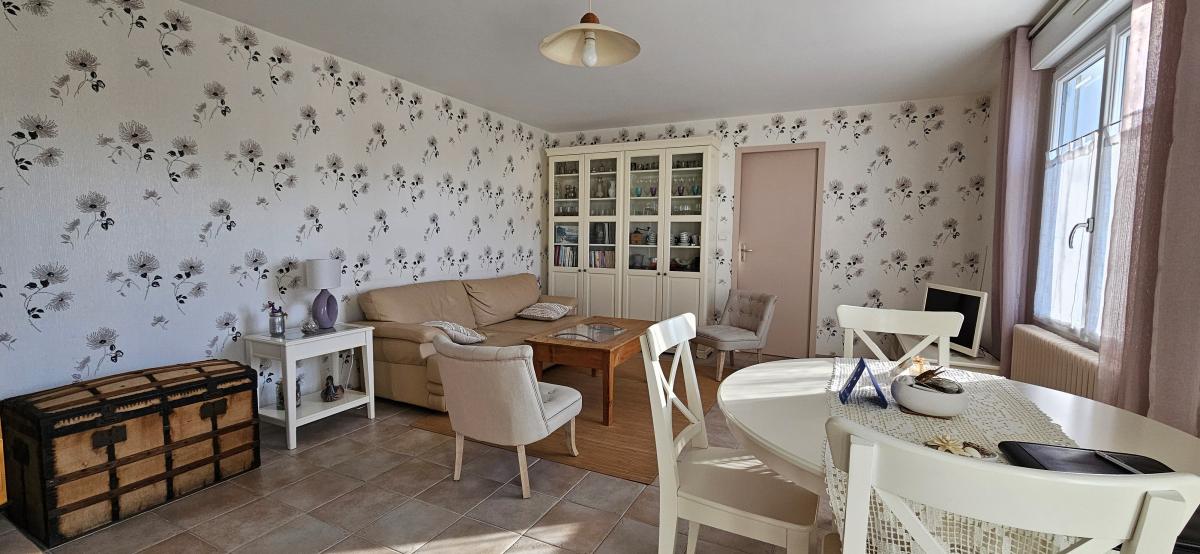 Maison 3 pieces de 72m² environ sur une parcelle de 433m² comprenant un séjour avec poêle, une cuisine équipée, 2 chambres 12 et 14 m2, une salle d'eau avec douche à l'italienne et wc.