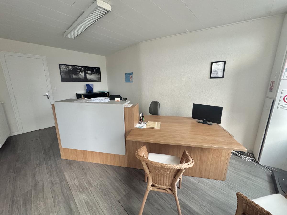 Au rez-de-chaussée, vous profitez d’un local avec vitrine, parfait pour une activité libérale, un commerce ou un bureau. À l’arrière, un dégagement dessert un coin WC/douche ainsi qu’un espace réserve/cuisine.