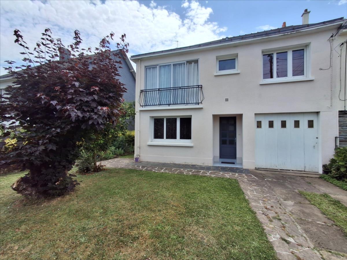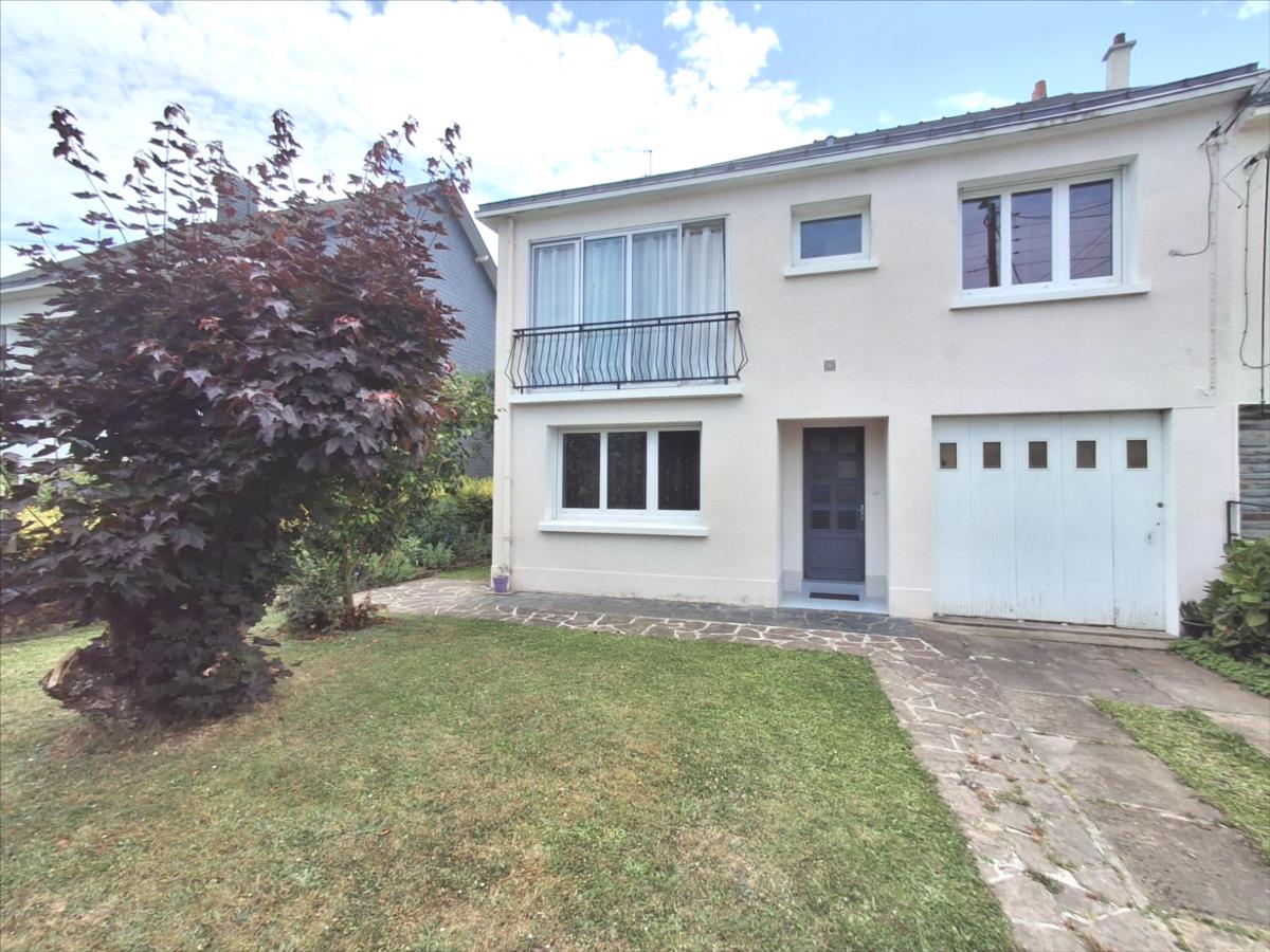 Saint-Herblain, quartier La Bouvardière proche Chézine. Maison traditionnelle en parfait état de 103 m2 hab. sur une parcelle de terrain sans vis à vis de 268 m2. Comprenant : une entrée, dégagement avec placard, WC, salon, cuisine ouverte aménagée. Garage avec espace buanderie.A l'étage : dégagement, quatre chambres équipées de placards, une chambre avec une loggia, WC, salle de bains.