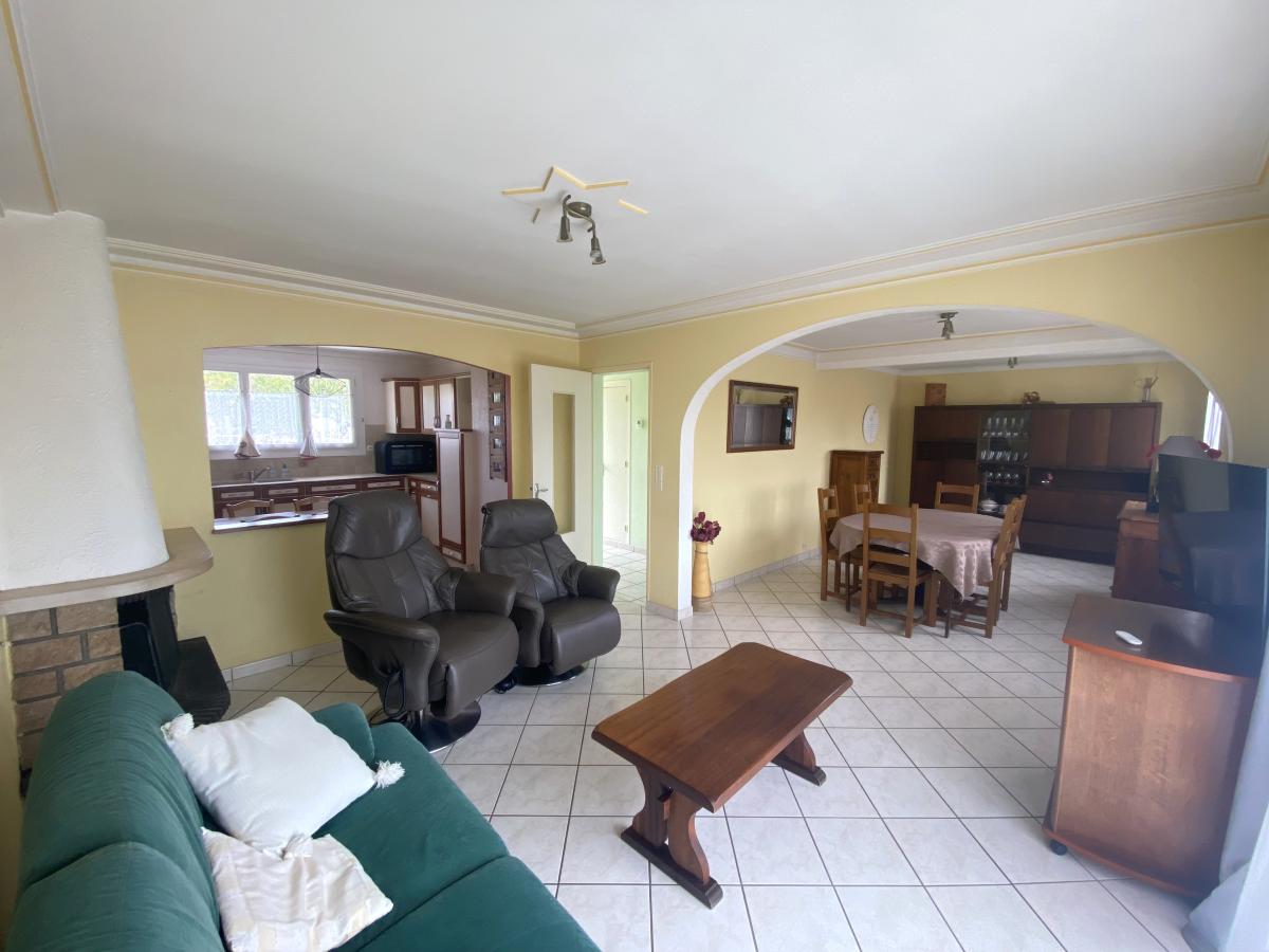 *EXCLUSIVITE* Située au calme dans le bourg, maison de plain-pied de 89 m² habitables des années 70 composée d'une entrée, un salon / séjour avec cuisine ouverte et cheminée, une salle d'eau rénovée, un WC, deux chambres, une chaufferie avec une partie du grenier aménagé et un garage avec portail électrique. Possibilité aisément de créer une troisième chambre, voir une quatrième. Fenêtres en double-vitrage, tout-à-l'égout conforme. Un jolie jardin de plus de 300 m² avec son abris de jardin complètent ce bien qui ne demande seulement qu'une remise au goût du jour.