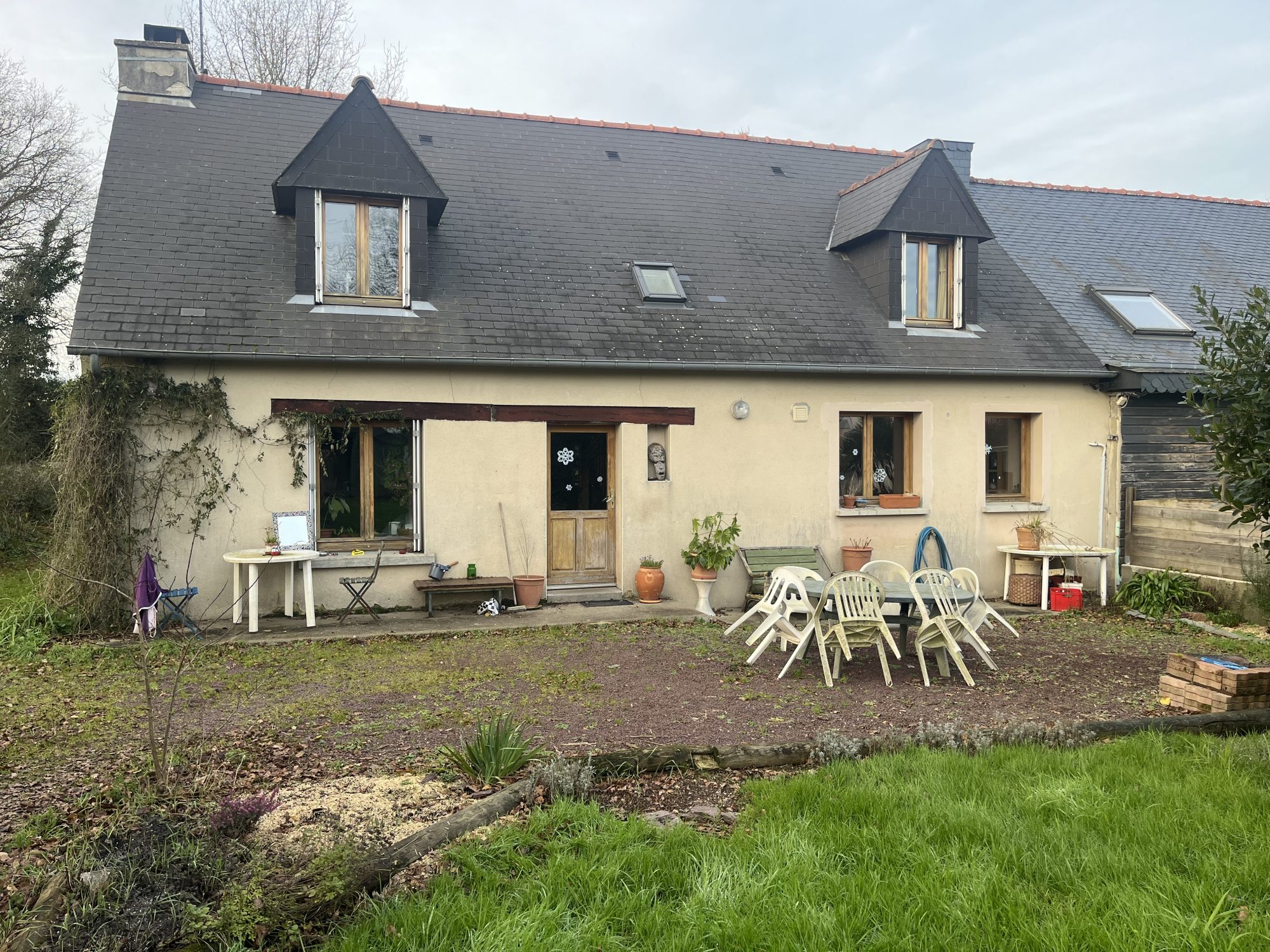 -Un bâtiment en pierre recouvert d’ardoises avec Grenier surface d’environ 22 m² au sol.