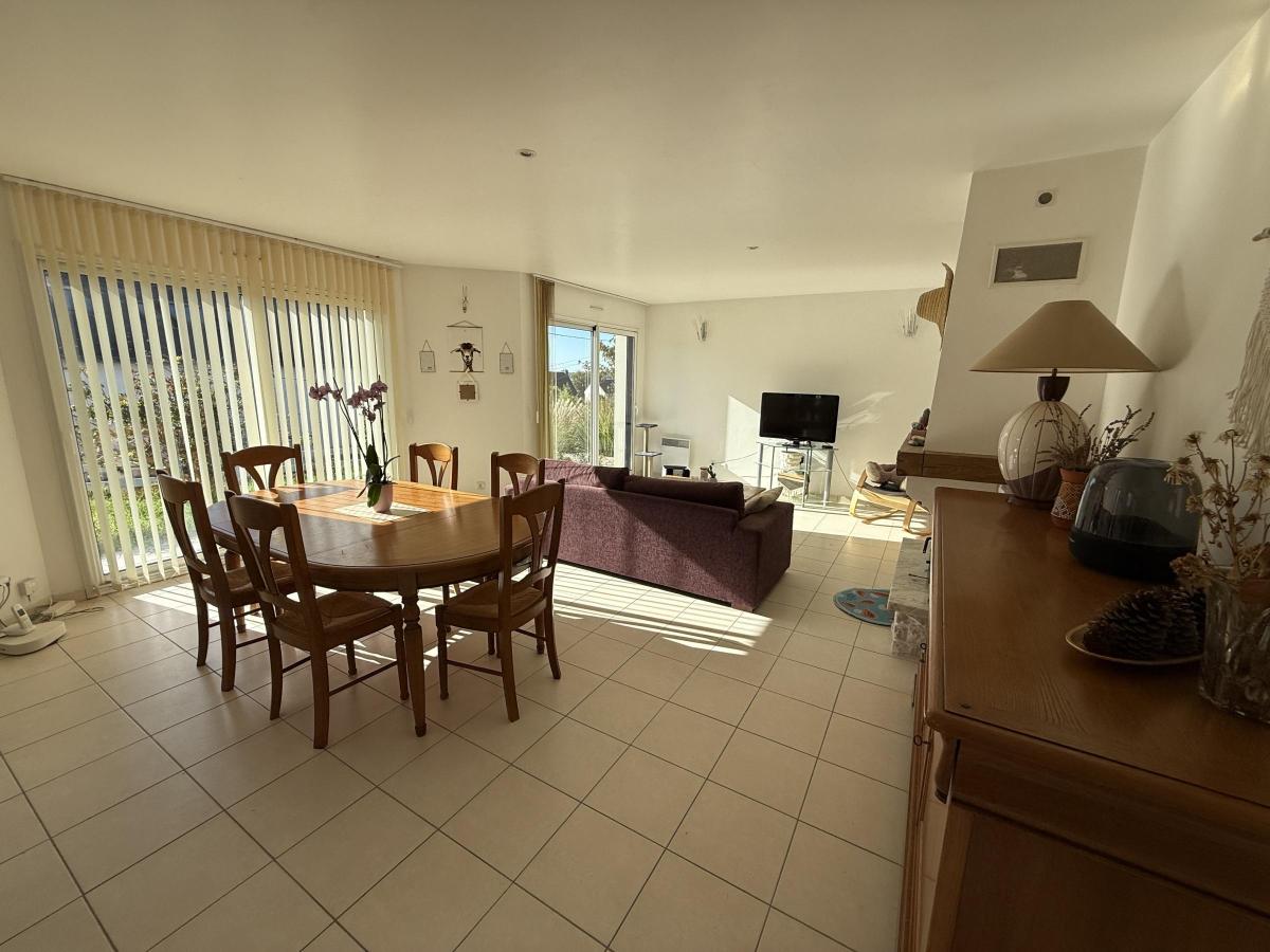 Elle comprend au rez de chaussée une chambre et une salle d'eau. Le salon séjour est spacieux et dispose d'un foyer fermé. Il est lumineux grâce à ses deux baies vitrées.