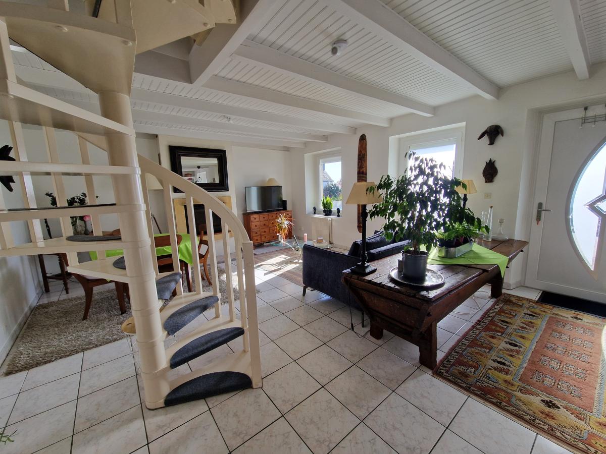 - rez-de-chaussée : cuisine aménagée et équipée ouverte séjour séjour-salon avec cheminée et insert, dégagement avec coin buanderie, salle d'eau-wc, couloir, dressing avec à une partie de l'étage composé d'une chambre mansardée avec coin bureau et nombreux rangements,