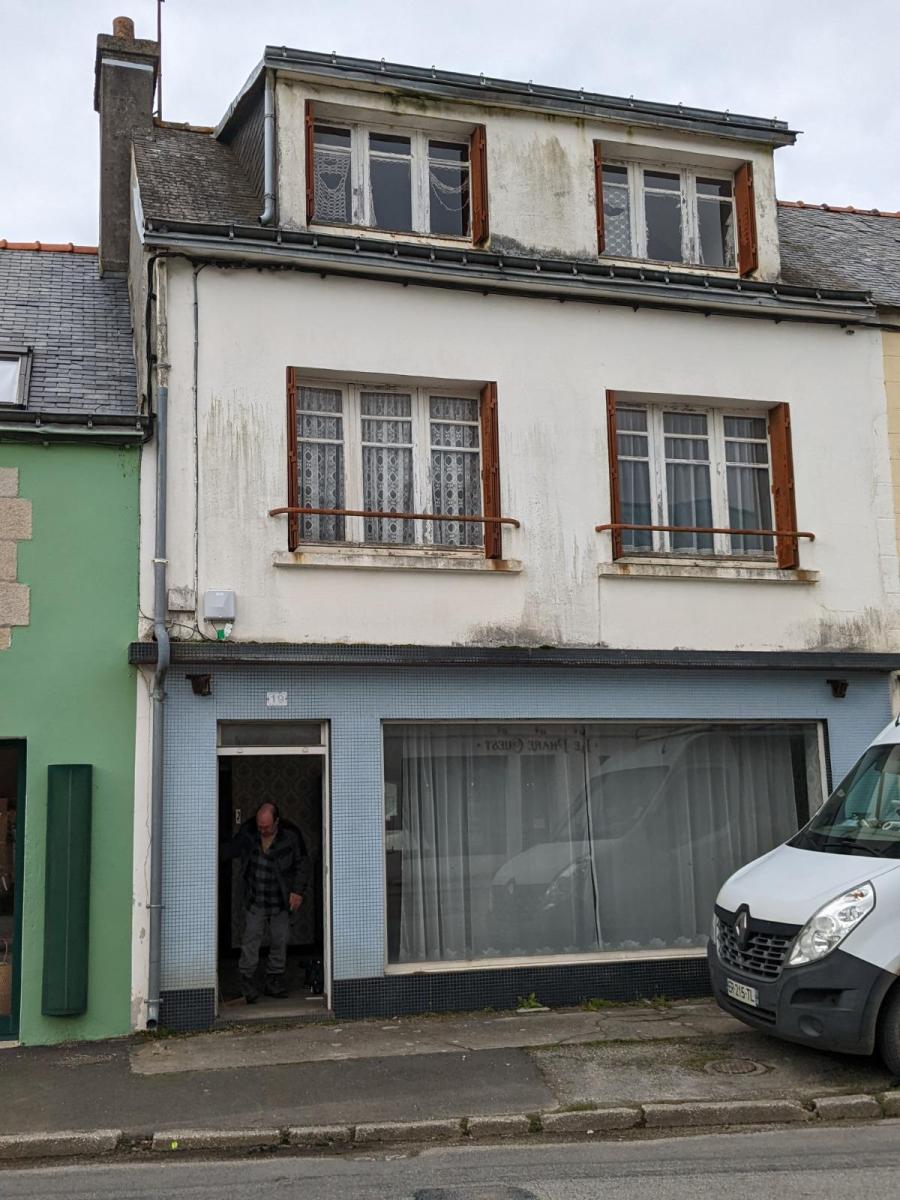 ROUDOUALLEC : Immeuble à usage de commerce et d'habitation dont la distribution est la suivante : -Rez-de-chaussée : cuisine, ancien commerce - Au 1 er étage : deux chambres, WC, dressing, salle de bain (baignoire, lavabo) - Au 2ème étage : deux pièces Le tout sur 44 m²