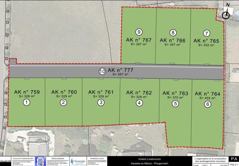 PLOUGONVELIN - Centre bourg, à quelques minutes du Trez Hir et de Bertheaume, dans petite division, à vendre terrain à bâtir viabilisé de 330 m². Libre de constructeur.