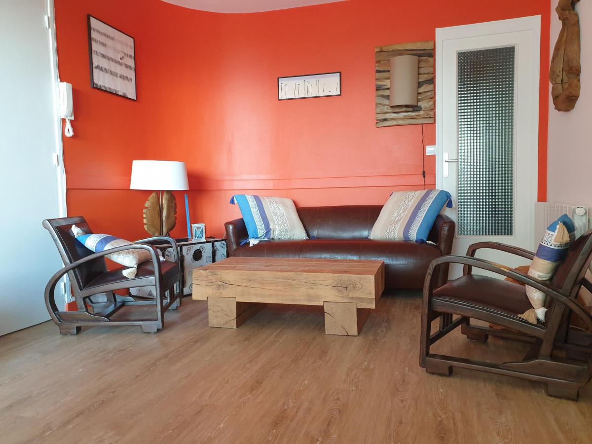 Face mer, Appartement de type 3 à louer meublé. Avec une surface habitable d’environ 54,04 m², il comprend un séjour ouvrant sur une terrasse de 11,75 m². La cuisine aménagée et équipée est fonctionnelle. L'appartement dispose également de deux chambres, d'un dégagement, d’un WC séparé et d’une salle d'eau.